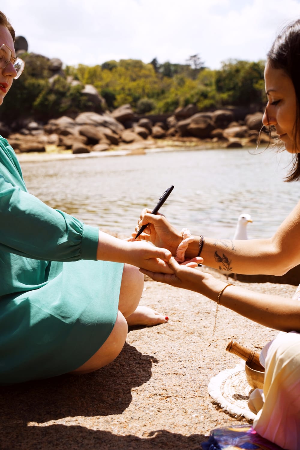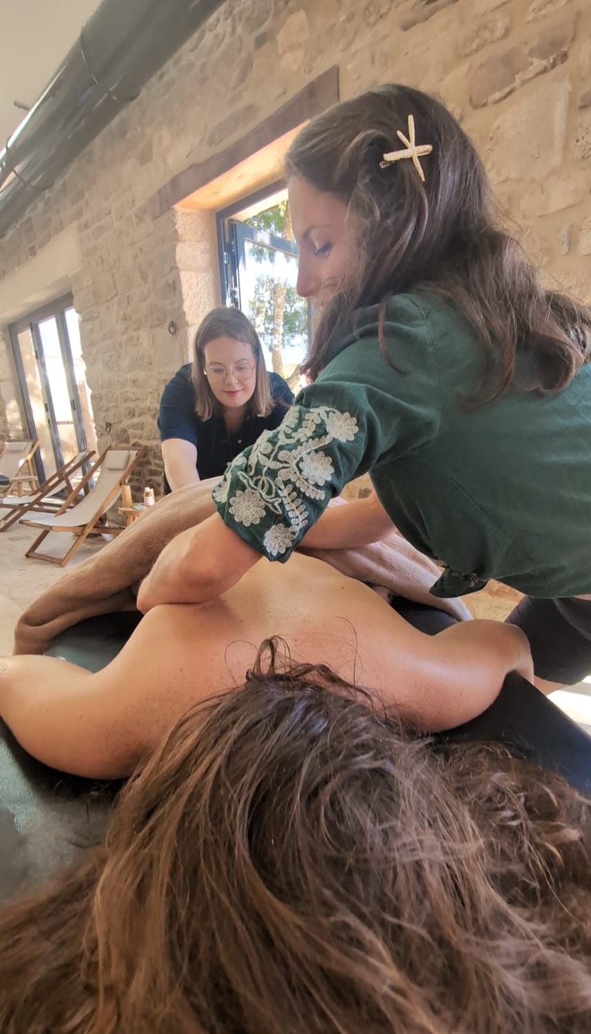 Nous accompagnons aussi en présentiel à travers des soins bien-être ou plus holistiques en Bretagne. Nous organisons régulièrement des événements qui sont affichés sur Instagram.